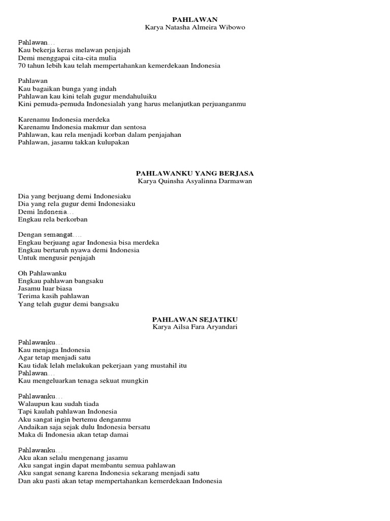 Pahlawanku Puisi Pahlawan 2 Bait
